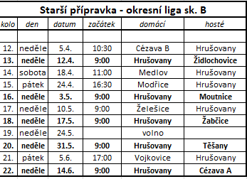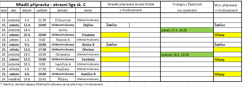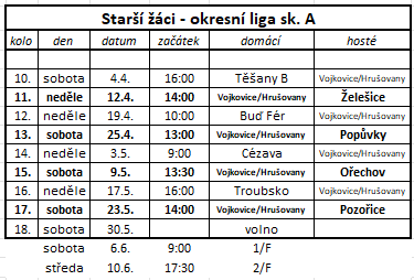 Zde jsou zápasy našich družstev. Jednotlivé zápasy se mohou měnit, a proto je důležité sledovat naše informační kanály.
